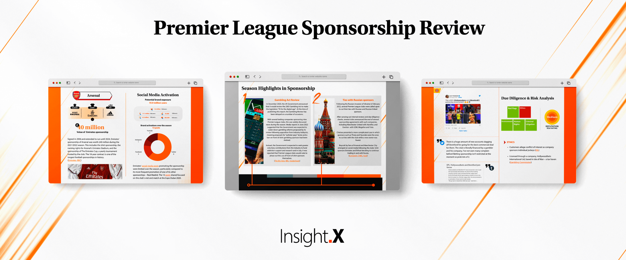 InsightX’s new ‘Premier League Sponsorship Review’ is the definitive analysis of the impact of every Premier League club’s front-of-shirt sponsorship deal for the 2021/22 season. It analyses the social media perception of each deal and the potential risks associated with each sponsor.